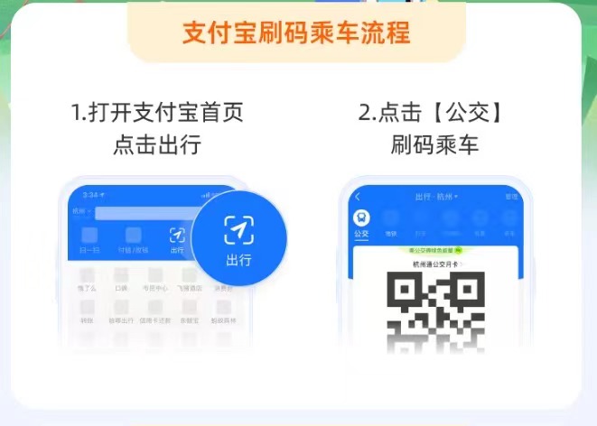 乘坐公交:點(diǎn)擊支付寶首頁(yè)出行,已開(kāi)通公交乘車卡的用戶可直接刷碼乘車。未開(kāi)卡用戶開(kāi)卡后即可刷碼乘車,乘車完成后自動(dòng)抵扣。