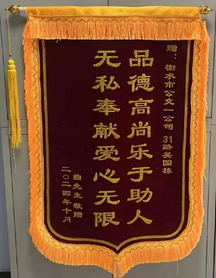 10月8日,一位市民帶著一面“品德高尚樂(lè)于助人 無(wú)私奉獻(xiàn)愛(ài)心無(wú)限”的錦旗來(lái)到衡水公交一分公司,對(duì)31路車(chē)長(zhǎng)的暖心之舉表示感謝。