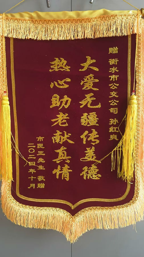 10月21日,市民王先生飽含深情地來到公交二分公司,為28路車長孫紅爽送來一面印有“大愛無疆傳美德 熱心助老獻真情”的錦旗,以此表達對孫紅爽的感謝與敬意。