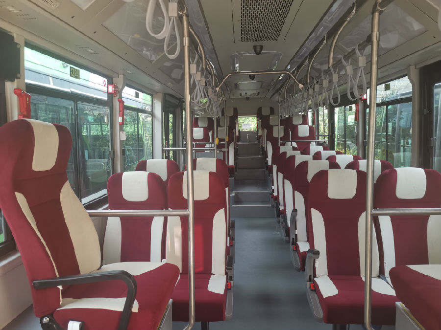 該批部分新車采用低地板一級踏步設(shè)計,極大方便老年人、兒童、行動不便者及攜帶行李的乘客上下車,有效減少乘車障礙,提升通勤安全與效率,讓公共出行更加安全無憂。車廂內(nèi)還配備多類人性化設(shè)施, USB、Type-C充電接口、實時動態(tài)導(dǎo)乘屏、舒適座椅及空氣質(zhì)量管理系統(tǒng),不僅方便乘客途中為電子設(shè)備充電,還能實時了解線路站點及到離站信息,營造更為舒適、宜人的乘車環(huán)境。