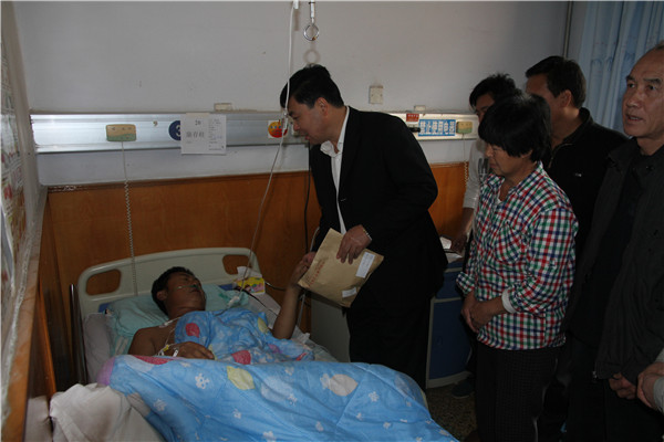 10月10日,一場溫暖的獻(xiàn)愛心活動正在總公司、三個分公司辦公室里悄悄進(jìn)行。一分公司一位老職工、好車長、好同事正遭受著癌癥的折磨,用他微薄的力量與死亡抗?fàn)帯?999年2月康存柱同志到我公司工作,2008年6月被我公司聘用,為一分公司車長。妻子長期在家務(wù)農(nóng),大兒子剛上班,二兒子待業(yè)。2013年冬天,康存柱同志因患重病住院治療。近一年來,通過醫(yī)療保險手續(xù)報銷了部分治療費(fèi)用。但是,不能通過醫(yī)保報銷的藥品、營養(yǎng)品等費(fèi)用數(shù)額也非常大。本就經(jīng)濟(jì)拮據(jù)的家庭瞬間被烏云籠罩,束手無策,整個家庭處在悲觀之中。長期以來,康存柱同志工作兢兢業(yè)業(yè),任勞任怨,為公交事業(yè)做出了積極的貢獻(xiàn)?偣镜弥⒑,鑒于于康存柱同志的實(shí)際困難,為充分體現(xiàn)組織溫暖,增強(qiáng)公司的凝聚力。總公司工會向全體職工發(fā)起愛心募捐倡議,倡議全體員工發(fā)揚(yáng)“一方有難,八方支援”的民族傳統(tǒng)精神和“相互幫助、患難扶持”的時代新風(fēng)進(jìn)行捐款,為工友及時伸出援助之手。倡議發(fā)出后,充滿情與愛的衡水公交人紛紛解囊相助,大家踴躍捐款,截止到10月12日,共收到300多名員工的近2萬元捐款。10月15日,總經(jīng)理張雙義同志帶領(lǐng)班子成員、部分職工代表來到醫(yī)院看望了康存柱同志及其家人,將愛心款交到了病人手中。張雙義同志與病人及家屬親切交談,詳細(xì)了解了病人的病情,鼓勵他們樹立信心,安心養(yǎng)病。同時,向病人及其家屬表示:在住院期間,如果遇到什么困難及時通知總公司,總公司永遠(yuǎn)是公交員工的靠山。另外,還特意安排相關(guān)工作人員協(xié)助病人家屬辦理相關(guān)的醫(yī)療保險報銷手續(xù),想盡一切辦法幫助病人家屬減少負(fù)擔(dān)。廣大公交人的捐款及時解決了工友的燃眉之急,使病人及家屬體會到了組織的溫暖。衡水公交人用赤城的愛心幫助工友化解危機(jī)、用互助的溫暖激勵工友戰(zhàn)勝困難的義舉,充分展現(xiàn)了衡水公交人高尚情操,進(jìn)一步詮釋了總公司“人文公交”的企業(yè)文化內(nèi)涵。