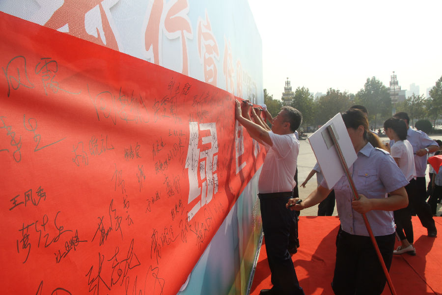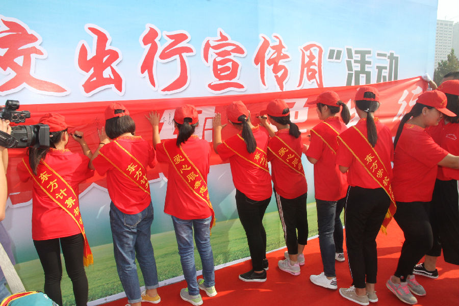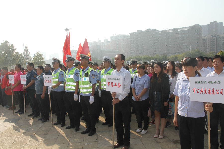 18日上午,市交通運(yùn)輸局、市公安局、市總工會(huì)、市文明辦,在市政府廣場(chǎng)聯(lián)合舉行了2017年“公交出行宣傳周”活動(dòng)啟動(dòng)儀式。市交通運(yùn)輸局方隊(duì)、市公安局交警支隊(duì)方隊(duì)、市總工會(huì)方隊(duì)、市文明辦組織的方隊(duì)、市公交總公司方隊(duì)、市愛心志愿者協(xié)會(huì)方隊(duì)、中國聯(lián)通衡水分公司方隊(duì)列隊(duì)參加。啟動(dòng)儀式后,優(yōu)選公交、綠色出行”萬人簽名活動(dòng)首批人員參加了簽名活動(dòng)。