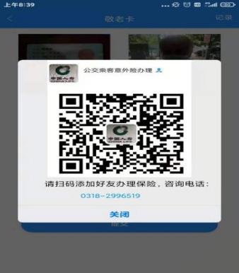 線上辦理敬老卡電子公交卡和年審業(yè)務(wù)只需交納15元乘車意外險(xiǎn)即可。當(dāng)提交完卡片年審申請(qǐng)后系統(tǒng)會(huì)自動(dòng)彈出保險(xiǎn)辦理人員的二維碼,用戶掃描二維碼添加其為好友后,提供被保險(xiǎn)人的姓名、身份證號(hào)碼和聯(lián)系方式,按照流程掃碼繳費(fèi)后,會(huì)收到電子保單。