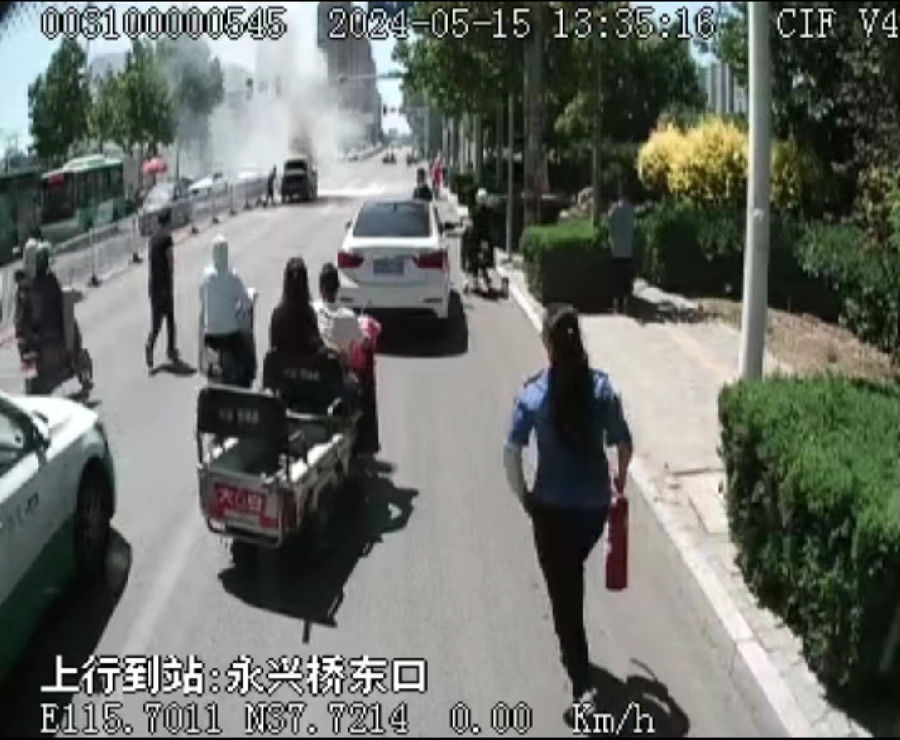5月15日下午13時32分,31路車長李月瑩駕駛公交車行駛到永興橋東口時,突然看到路邊一輛小汽車冒出濃煙并有火苗竄出,危急時刻,李月瑩立即將公交車停到安全地帶,抄起隨車配備的滅火器,沖向起火地點(diǎn)。由于火勢較大,李月瑩將滅火器用完之后仍有明火不斷竄出,火情未得到有效控制。恰好此時,30路車長趙紅霞和31路車長史立英駕駛公交車行至此地,看到這一情況,他們果斷靠邊停車,拿起滅火器迅速與李月瑩一起參與滅火,三位公交車長不懼危險勇敢撲救,待消防員趕到,三人才放心離開,轉(zhuǎn)身回到公交車上繼續(xù)投入到營運(yùn)工作中,他們用實(shí)際行動贏得了眾多市民和車內(nèi)乘客的紛紛贊揚(yáng)。